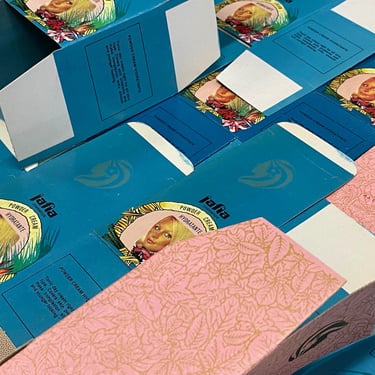 Maria Glyka, Hydratante, 2025. (Jafia's cosmetic boxes gifted to the artist by Vangelis Georgakopoulos, descendant of Jafia cosmetics company owner)